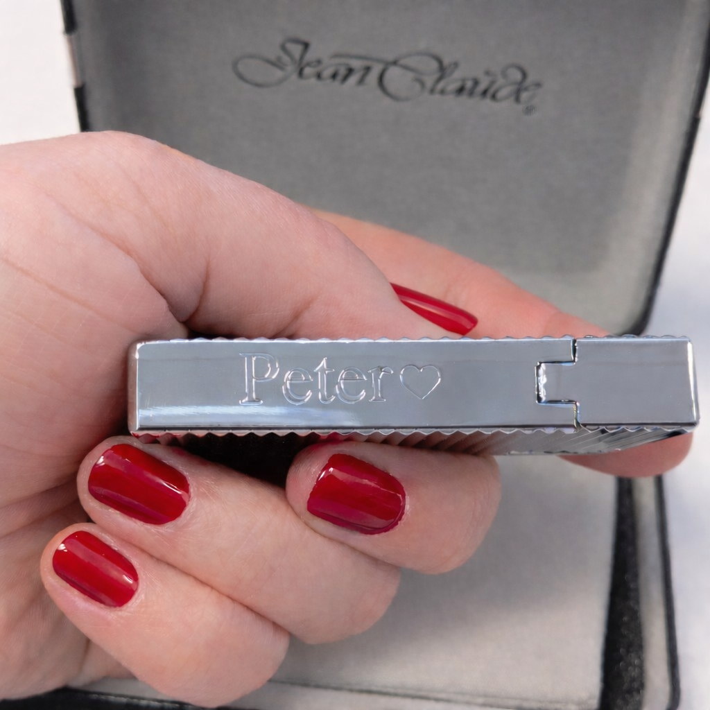 Deze elegante Jean Claude aansteker in chroom uitvoering combineert een strak design met betrouwbare kwaliteit. De luxe afwerking en het moderne lijnenspel geven de aansteker een tijdloze uitstraling – perfect voor dagelijks gebruik of als exclusief cadeau.