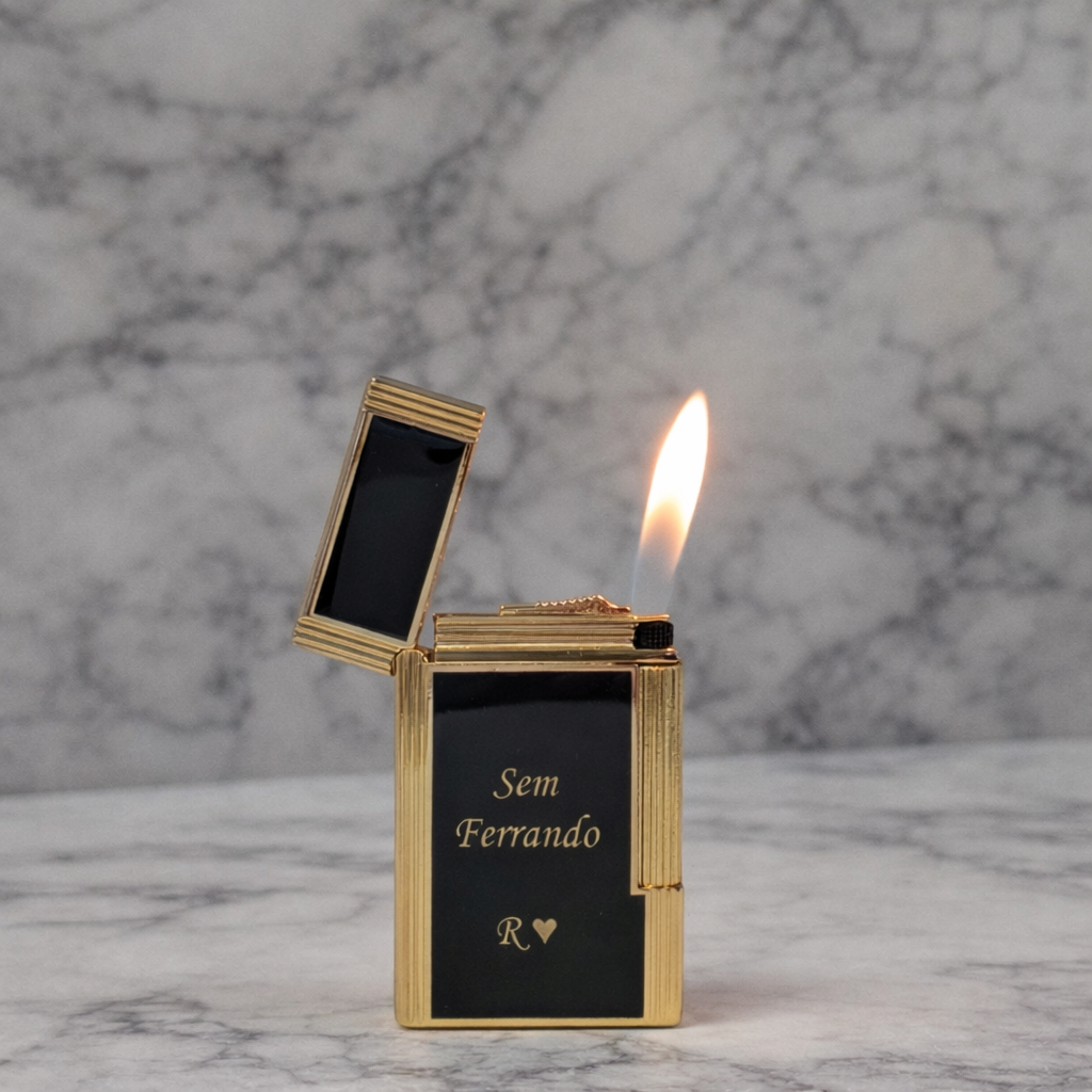 De Jean Claude Dustin is een stijlvolle vuursteenaansteker met een krachtige, tijdloze look. De combinatie van hoogglans goudkleurige accenten met zwarte panelen geeft deze aansteker een chique en moderne uitstraling. De strakke belijning en het elegante zijpaneel met geïntegreerd wieltje maken het ontwerp helemaal af.