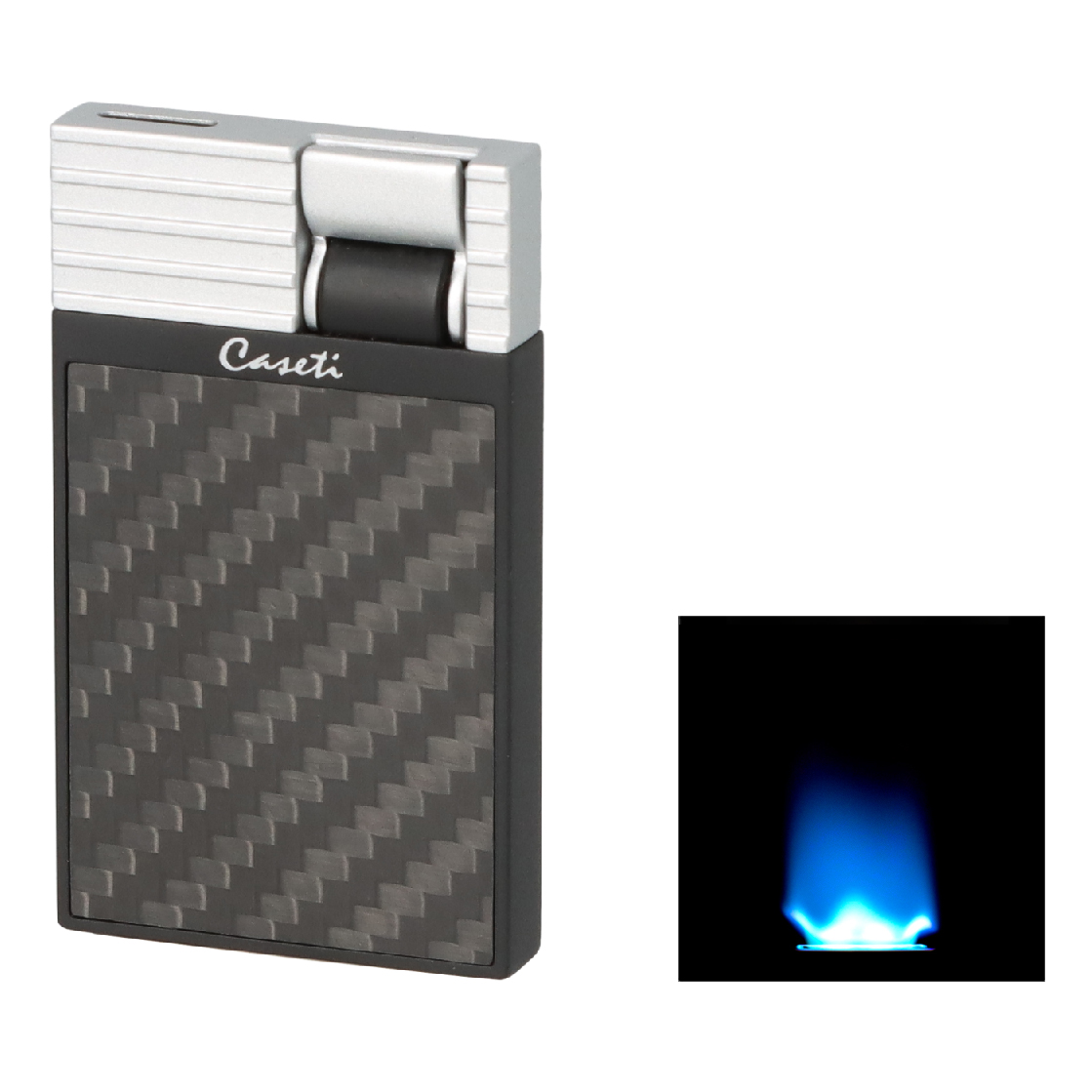 Caseti aansteker met enkele vlam en dubbele vlam en punch Carbon Chroom.Deze Caseti aansteker heeft...