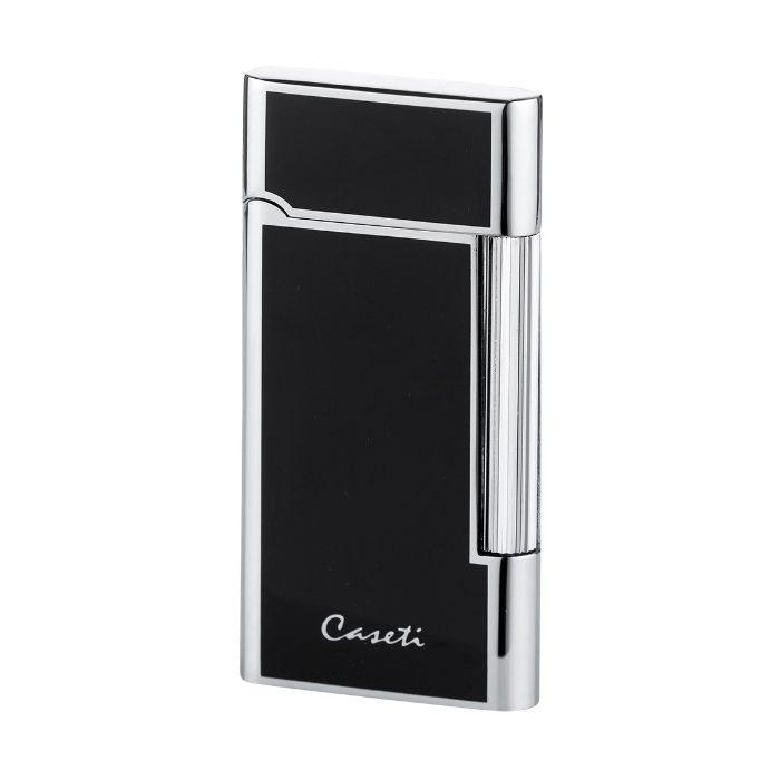 Caseti single jetflame aansteker in de kleur mat zwart met een zilverkleurige baan rondom de...