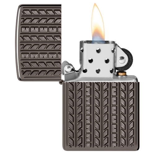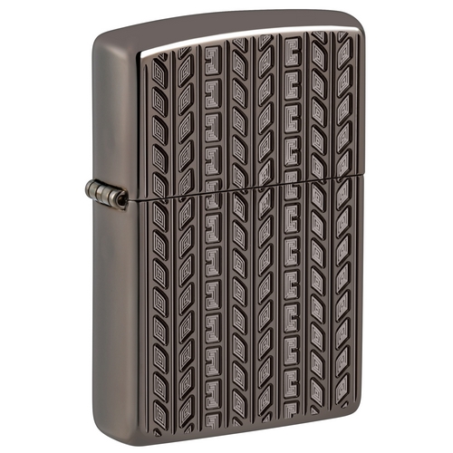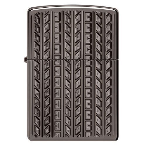 Deze Zippo aansteker heeft een Black Ice afwerking met aan de voorzijde een gravure van een patroon.