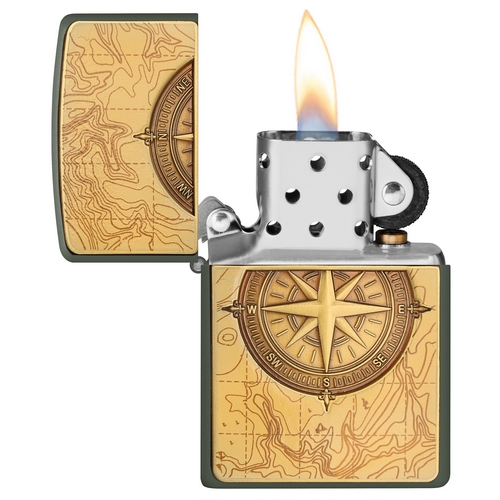 Zippo aansteker Kompas. Deze Zippo aansteker heeft een hoogglans chromen afwerking en aan de...